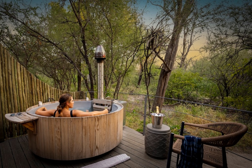 Das kürzlich renovierte Onguma Forest Camp liegt im Waldgebiet einer Flusslandschaft und bietet hohe Strohdecken, einen beeindruckenden Weinkeller als Ergänzung zu köstlichen Mahlzeiten unter dem Sternenhimmel, einen erfrischenden Swimmingpool und eine erhöhte Aussichtsplattform mit Blick auf ein großes und aktives Wasserloch .